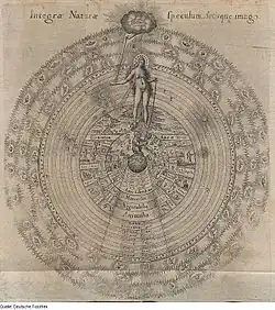 Ilustración del orden cósmico de Robert Fludd, donde el alma del mundo se representa como una mujer.