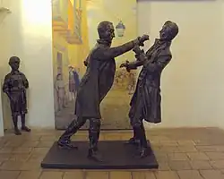 Monumento de la pelea entre Sanz y José González Llorente, Museo del florero, Bogotá. | ||
