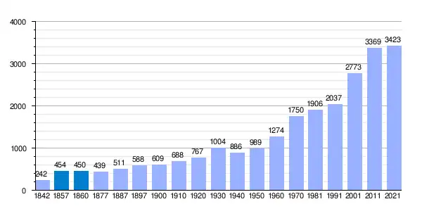 | Gráfica de evolución demográfica de Pantoja[3] entre 1842 y 2021 |