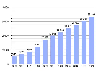 Población municipal (1950-2020) según el Cuaderno estadístico municipal y el Instituto Nacional de Estadística y Geografía.[20][21] |