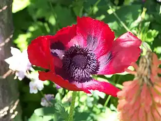 Papaver bracteatum, también conocida como la amapola iraní, es una amapola resistente y perenne con grandes flores rojas profundas de hasta 20 cm de diámetro en rígidos tallos de hasta 1,22 metros de altura con un prominente punto negro cerca de la base de los pétalos. Se relaciona con la amapola oriental comúnmente cultivada, Papaver orientale.