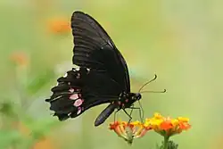 - ↑ a b Butterflies of the Amazon and Andes Ruby-spotted swallowtail. Consultado el 12 de junio de 2017.
