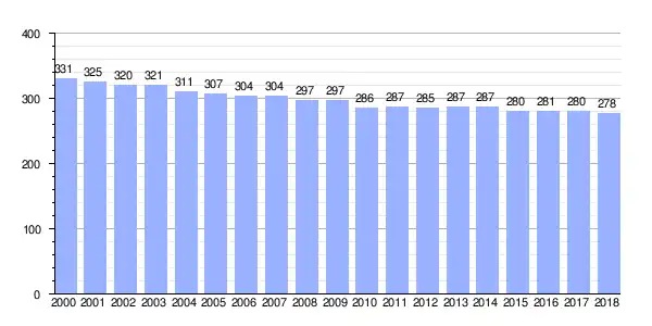 | Gráfica de evolución demográfica de Papucín[2] entre 2000 y 2018 |