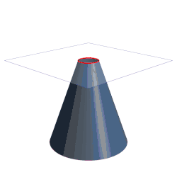 - ↑ Si el ángulo que forma el plano de intersección con el eje de revolución o directriz del cono, es mayor que el comprendido entre dicho eje y la generatriz, entonces la intersección será una elipse. Será una hipérbola si dicho ángulo es menor al citado, y una circunferencia si el plano es perpendicular al eje.