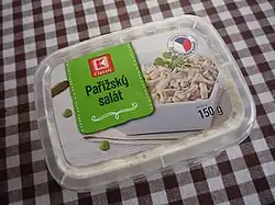 - ↑ «Takto vyzeral tradičný parížsky šalát podľa normy ČSN z roku 1976». www.zenyvmeste.sk (en eslovaco). Consultado el 22 de abril de 2023.