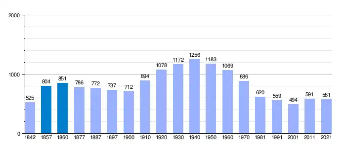 | Gráfica de evolución demográfica de Paracuellos de Jiloca[5] entre 1842 y 2021 |