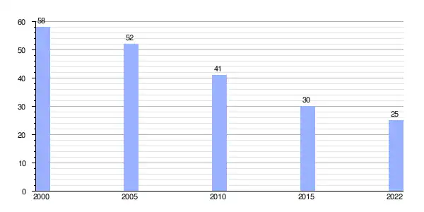 | Gráfica de evolución demográfica de Paradela entre 2000 y 2022 |