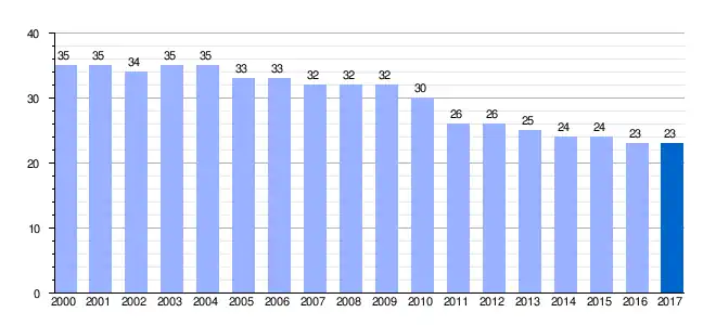| Gráfica de evolución demográfica de Paradinas de Abajo[1] entre 2000 y 2017 |