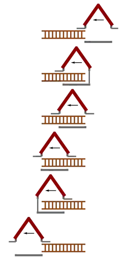 No es especificado, en cambio, qué sucede después de la llegada de la fuerza a la parte posterior de la escalera (la zona que aparece coloreada de "verde" en el diagrama). A tenor de las leyes de la física, la escalera podría romperse o, si fuera lo suficientemente elástico o en función de las propiedades del material, doblarse o deformarse (volviéndose a extender hasta su longitud original o manteniendo una aceleración constante contra la puerta de salida, en el caso de ser elástico con propiedades ideales o suficientes).