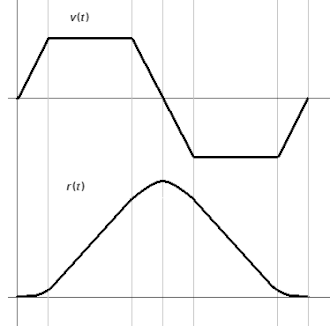 Entre los instantes tiempo t = T1 y t = T1+T2 (medidos por el gemelo terrestre) la nave espacial se mueve con velocidad uniforme V por tanto: