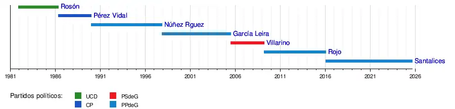 El mandato de los diputados termina cuatro años después de su elección o el día de la disolución de la Cámara, cuyo derecho corresponde al presidente de la Junta de Galicia.