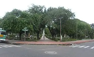 En el centro de la plaza se levanta un monumento en honor a los actores más reconocidos de las gestas independentistas, alusivo a la conmemoración de los primeros cien años de la batalla de Boyacá.