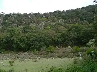 Vegetación rupícola. Se encuentra en las paredes de las dos áreas con mayor pendiente, hacia el límite este-noreste del área de estudio, circundando con los encinares y hacia el límite oeste. Entre las especies de importancia de la zona se encuentran. Agave filifera, Hechtia sp. y Mammilaria macrohelia