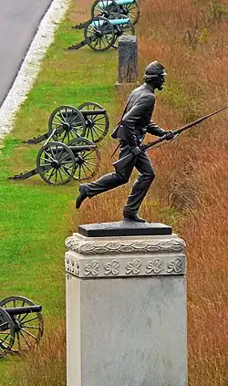 El Parque Militar Nacional de Gettysburg protege e interpreta el paisaje de la Batalla de Gettysburg de 1863 durante la Guerra de Secesión de los Estados Unidos. Ubicado en Gettysburg, Pensilvania, el parque es administrado por el Servicio de Parques Nacionales.[2] Las propiedades de parque nacional incluyen la mayor parte del campo de batalla de Gettysburg, muchas de las áreas de apoyo empleadas durante la batalla (p. ej., zonas de reserva, suministros y ubicaciones de hospitales) y varias otras áreas no relacionadas con la batalla, asociadas con las «secuelas y conmemoraciones» de la misma, incluido el Cementerio Nacional de Gettysburg. Muchos de los 43 000 artefactos de la Guerra de Secesión del parque se exhiben en el Museo y Centro de Visitantes de Gettysburg.