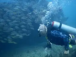 Para la práctica de buceo, los sitios más conocidos son: "cuevones", "picudas", "caracol", "la bocana", "el túnel", "los jardines", "la pared", "el puente" y el arrecife artificial cañonero C-56 “Juan Escutia” donado y hundido por la Armada de México el 28 de octubre de 2000. La fauna marina es muy amplia, es muy frecuente encontrar cardúmenes de jureles, pargos, barracudas, algunos tipos de chernas, rayas águila, y ocasionalmente tiburón nodriza o gata y tiburón toro.