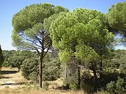 - Masas mixtas de encina y pino sobre la campiña detrítica;