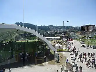 El parque urbano se divide en tres secciones principales; un edificio multiusos que fue el interior del antiguo terminal terrestre y que actualmente cuenta con un pequeño museo de la historia del lugar, galería de arte, piscina, gimnasio, área de lectura y que puede servir para eventos y conferencias, una cancha cubierta que puede usarse para partidos de fútbol u otras actividades físicas, y un área verde adyadecente que busca rescatar los inicios del lugar como una quebrada.