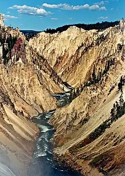 El parque nacional de Yellowstone (en inglés: Yellowstone National Park) es un parque nacional ubicado en los estados de Wyoming, Montana y Idaho, en Estados Unidos, y cuya superficie abarca 2 219 789 acres (8983,2 km²).[2] Tras una serie de expediciones a la región entre los años 1800 y 1860, en las que participaron tramperos y exploradores como John Colter, Jim Bridger, William F. Raynolds, Ferdinand Vandeveer Hayden, Nathaniel P. Langford y Gustavus Cheyney Doane, y a partir de varias discusiones parlamentarias en el Congreso de los Estados Unidos,[3] el presidente Ulysses S. Grant firmó la ley The Act of Dedication en marzo de 1872, mediante la cual quedó establecido como el primer parque nacional estadounidense, y el primero de su tipo en el mundo.[4]