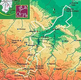 Al norte se encuentra la sierra de Arcos, por cuyas estribaciones el barranco de la Muela y del Mortero, y el río Escuriza unen sus aguas al Martín, abriendo una profunda brecha en la sierra que se conoce como Los Estrechos, poco antes de llegar a Albalate del Arzobispo, límite nordeste del parque cultural.