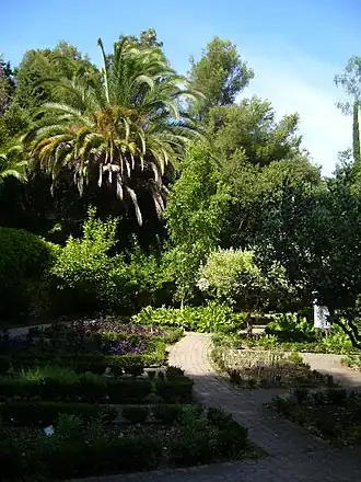 El jardín tropical alberga una treintena de diferentes especies de palmas, además de mimosas, bougainvilleas, bambús, bananas, y otras plantas tropicales.