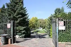 En la entrada de la puerta principal, existe un cartel con un plano esquemático del parque, donde aparecen enumeradas todas las especies arbóreas existentes y su ubicación.