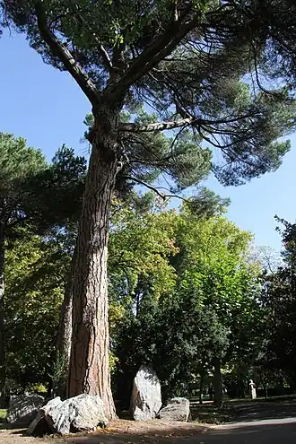 Al pie de un pino piñonero de gran envergadura se encuentra una roca tallada, como homenaje y recuerdo de los niños de León, a Félix Rodríguez de la Fuente.
