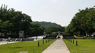 - El Monumento Conmemorativo de los Mártires Patriotas fue inaugurado el 17 de noviembre de 1992 por la ciudad de Seúl en honor a los mártires patriotas que resistieron contra la ocupación japonesa de Corea. En la parte posterior del monumento, se encuentra una inscripción redactada por Park Yeong-seok, quien fungió como presidente del Comité Nacional de Compilación de Historia.[5]