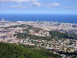 ![]() Los Tres Cerros: de izquierda a derecha, el cerro de la Rovira, el cerro del Carmelo y el cerro de la Creueta del Coll | ||