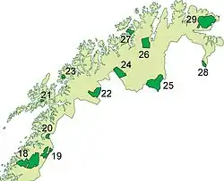Ubicación del parque (n.° 23) en el norte de Noruega | ||