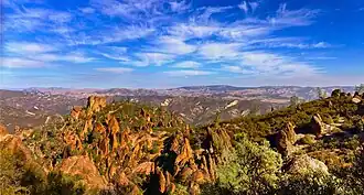 El parque nacional Pinnacles (en inglés Pinnacles National Park) es un parque nacional de Estados Unidos.[1] El parque protege una zona montañosa ubicada al este del valle de las Salinas en Central California, a unos 8 km de Soledad California y unos 140 km al sureste de la localidad de San José. El nombre del parque (en inglés, pináculos), hace referencia a los pináculos erosionados, resabios de la porción occidental de un volcán extinto que se desplazó unos 350 km de su posición original sobre la falla de San Andrés, enraizado en un sector de las cadena costera del Pacífico en California.