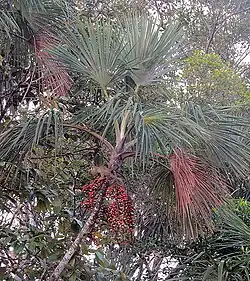 - Bosque pantanoso conocido como moretal, dominado por la palma morete (Mauritia flexuosa).