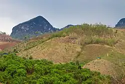 Presenta un paisaje de cascadas, cuevas y manantiales. Es la fuente numerosos afluentes del río Ping.[1]