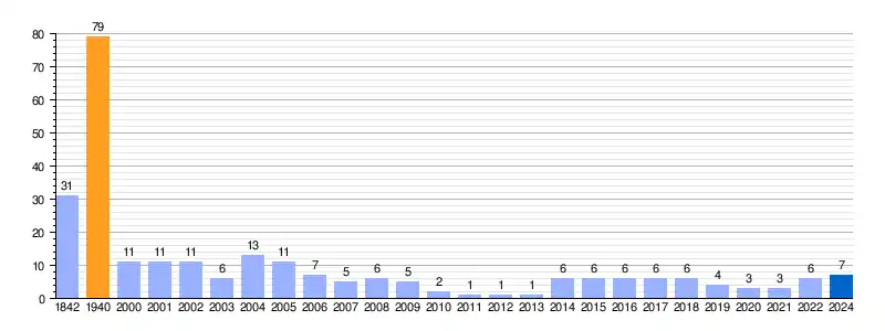 | Gráfica de evolución demográfica de Parral de Villovela[1][7] entre 1842 y 2024 |