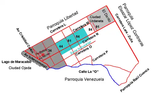 Se encuentra entre la Parroquia Libertad al norte (carretera L) , la parroquia Eleazar López Contreras al este (carretera Lara - Zulia), la Parroquia Venezuela al sur (caño de la O) y el Lago de Maracaibo al oeste.