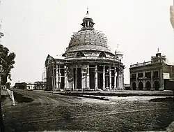 La construcción del monumental templo, fue encomendada al ingeniero don Nicolás Canale. Luego del fallecimiento de este, ocurrido en 1876, fue continuada por su hijo José, interviniendo en las últimas etapas el arquitecto don Juan Antonio Buschiazzo. Por falta de dinero, la edificación resultó lenta. Y para obtener más fondos tuvieron que rematar los terrenos de la barranca donde se levantaba la antigua capilla y el edificio de la misma, con todas sus existencias. En un texto de la época se decía "Hoy tiene lugar el interesante remate en el Paseo de la Barranca del edificio y terreno perteneciente a la Iglesia vieja. Recomendamos este terreno a los ricos capitalistas amantes de lo bueno y del progreso, mucho más siendo su producto destinado para la prosecución de nuestro colosal monumento, la Iglesia nueva".