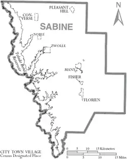 - ↑ «Sabine Parish, Loiusiana». Citypopulation.de. Consultado el 2 de abril de 2022.
