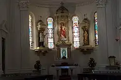 Además dentro del templo hay varios vitrales, representando a Nuestra Señora de Lourdes, Santa Teresa y San Norberto en el ábisde. En la puerta está el vitral con el escudo de la familia de San Francisco Javier y el símbolo del Ave María Purísima, ambos donados por la familia Texidor.