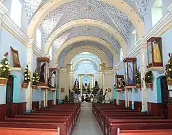 Posee dos capillas anexas a los costados, una dedicada a la Virgen de Guadalupe y la otra al Señor de la Misericordia, que tiene la función de sagrario, además de un bautisterio de planta octagonal.