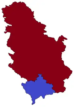 - ↑ Kosovo está sujeto a una disputa territorial entre la República de Serbia y la autoproclamada República de Kosovo. La independencia unilateral de esta región se realizó el 17 de febrero de 2008 a pesar de que Serbia la considera parte de su territorio. La provincia es reconocida internacionalmente como parte de Serbia por la mayoría de la comunidad internacional