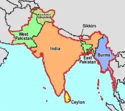 El dominio británico en el subcontinente indio, le concedió la independencia en 1947 y 1948, convirtiéndose en cuatro nuevos estados independientes: la India, Birmania, Sri Lanka, y Pakistán ( incluyendo Bengala Oriental, entre 1971 y Bangladés).