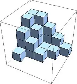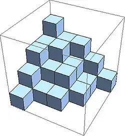 Además solo un número finito de los son distintos de cero. Una partición plana de un entero puede representarse gráficamente mediante una pila de cubos unitarios sobre el punto (i, j) en el plano gausiano, resultando un sólido tridimensional como el mostrado en la imagen.