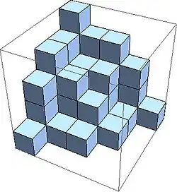 - ↑ Mills, Robbins, Rumsey (1986). «Self-Complementary Totally Symmetric Plane Partitions». Journal of Combinatorial Theory, Series A 42 (2): 277-292. doi:10.1016/0097-3165(86)90098-1.