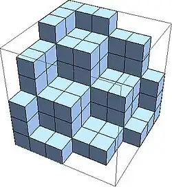 Sustituyendo cada nodo de una partición plana por un cubo con bordes alineados con los ejes se obtiene una representación pila de cubos de la partición plana.