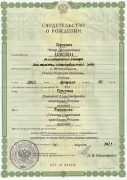 El certificado de nacimiento de los padres del niño puede obtener (no privado de los derechos de los padres), en sí mismo un hijo mayor de edad, tutor (es) o cuidador (s). La emisión del documento se realiza en las oficinas del registrador, ZAGS (en ruso:ЗАГС).