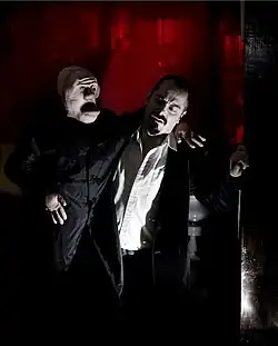 - Esta obra contiene una traducción derivada de «Hungarian Two Tailed Dog Party» de Wikipedia en inglés, publicada por sus editores bajo la Licencia de documentación libre de GNU y la Licencia Creative Commons Atribución-CompartirIgual 4.0 Internacional.