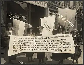 - ↑ «Tactics and Techniques of the National Womans Party Suffrage Campaign | Articles and Essays | Women of Protest: Photographs from the Records of the National Woman's Party | Digital Collections | Library of Congress». Library of Congress, Washington, D.C. 20540 USA. Consultado el 21 de septiembre de 2024.