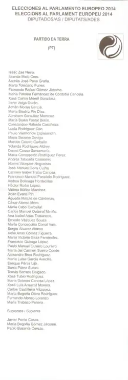 - ↑ "O Partido da Terra abre as súas portas para elixir candidato ás europeas" no xornal dixital Galicia Confidencial.
