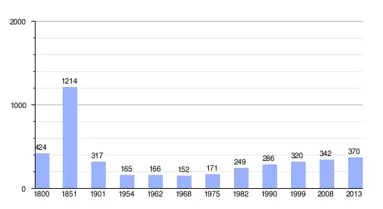 | Gráfica de evolución demográfica de Parves entre 1800 y 2013 |