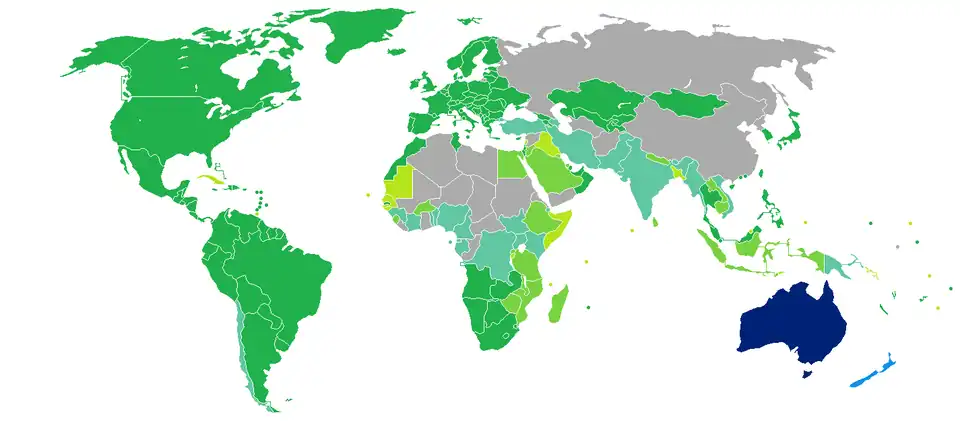Australia Libertad de movimiento (Acuerdo de viaje Trans-Tasman) Sin necesidad de visa Visa a la llegada Visa a la llegada o visa electrónica Se requiere visa antes de la llegada