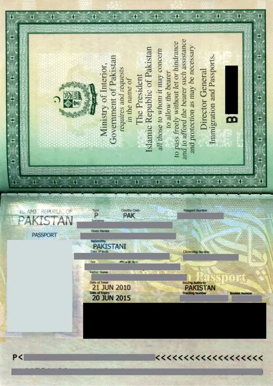 - Pasaporte ordinario: Se expiden a los ciudadanos pakistaníes que no cumplan los requisitos para obtener las otras categorías de pasaportes. La cubierta exterior es de color verde.